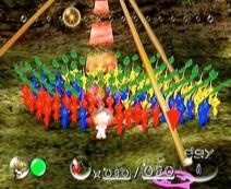 | A Nintendo tem uma longa tradição de recriar certos estilos de jogos de maneira a mudar suas características, transformando-os em algo mais divertido e acessível. Foi o que aconteceu com as séries Punch Out!, Mario Kart e muitas outras. E agora o maior designer da empresa, Shigeru Miyamoto, acabou fazendo o mesmo com os jogos de estratégia em tempo real, inspirado em formigas que ele viu em seu jardim. Conheça Pikmin, a mais nova loucura do criador de Mario e Zelda. Apesar da comparação ser justificada, Pikmin não é nem de perto um jogo parecido com Command & Conquer ou Warcraft. Sim, ele empresta alguns elementos do gênero de estratégia em tempo real, mas isso é apenas um detalhe. Pikmin é um game com objetivos, ritmos e apresentação completamente diferente. Uma vez esclarecido isso, vamos ao miolo do título. Tudo começa quando o Capitão Olimar navega pelo espaço em sua nave, a Dolphin, e colide com um asteróide, cainda em um enorme planeta azul. Olimar encontra sua nave despedaçada em 31 partes, em um local com oxigênio venenoso - sendo que seu suporte de vida só durará 30 dias. Ele sabe que não conseguirá recuperar as 30 peças espalhadas sozinho, e começa a ficar desesperado. E é assim que ele encontra um 'Onion', uma grande estrutura vermelha, que cospe uma pequena semente. Desta nasce uma obediente criatura da mesma cor, que ele decide batizar de Pikmin (pensando nas Pikpik de seu planeta natal). O Pikmin então corta uma flor e traz uma ficha para a Onion, que produz mais Pikmin. E com essa tropa cada vez maior, Olimar consegue recuperar o motor da nave e viajar pequenas distâncias (as diferentes fases do jogo), sendo acompanhado pela Onion. Tudo isso acontece no primeiro dia do game, que serve de tutorial. Os demais dias contam com um limite de 15 minutos, ao final dos quais terríveis criaturas atacam - e se Olimar e os Pikmin não voltarem para seus respectivos lares (as Onions e a Dolphin), eles são comidos. Olimar encontra durante suas aventuras duas outras formas de Pikmin: azul e amarelo. Cada um deles é capaz de realizar tarefas diferentes como resistir a fogo, água e carregar bombas. Os Pikmin também ganham níveis, e as flores em suas cabeças crescem para indicar essa diferença. Desta forma, você se vê forçado a gerenciar grupos de centenas de Pikmin a realizar inúmeras tarefas para reconstruir a nave no tempo determinado. Na sua primeira jogada, você levará dias para recuperar cada peça, e por isso é necessário recomeçar o jogo inúmeras vezes. Cada vez que você joga novamente consegue economizar tempo ao gerenciar melhor seus Pikmin - e essa mecânica se repete no decorrer do game. Você terá que construir pontes, destruir obstáculos, empurrar objetos, matar criaturas e conseguir mais Pikmin para melhorar sua performance nessas tarefas. Duas coisas impressionam no jogo: a primeira é a simplicidade do conceito, que consegue ser desafiador sem ser frustrante, e recompensador por sua dificuldade balanceada. Cada desafio é proposto de maneira inteligente e criativa, e cada jogador pode enfrentá-la de uma maneira diferente para tentar conseguir resolver o problema no menor tempo possível. A segunda coisa que chama atenção é a narrativa: Olimar mantem um diário de sua exploração, e o texto é claramente baseado no estilo de Robinson Crusoé, não apenas divertindo o jogador, mas criando todo o clima de aventura e descobrindo, aumentando demais a imersão. Do ponto de vista gráfico, Pikmin brilha quando visto das câmeras mais afastadas. O detalhe de cada textura imita de maneira quase surreal o microcosmo do mundo onde Olimar está preso. Infelizmente, quanto mais a câmera se aproxima, as texturas começam a se provar borradas. Não é o maior problema do mundo, mas os detalhistas podem reclamar desse pequeno defeito. Um efeito de blur é utilizado durante o decorrer do jogo para simular o exagero de luz, e traz certo charme a apresentação. A framerate é constante, e só engasga mesmo no último chefe do jogo (o que não é de surpreender... vocês entenderão quando chegarem lá). Na parte sonora, a trilha é tudo que você poderia esperar da Nintendo, com efeitos repetitivos mas carismáticos - o barulho dos Pikmin girando ao redor de Olimar é simplesmente hilário. Alguns podem reclamar do pequeno número de canções, mas elas são fáceis de escutar e não incomodam. Uma vez terminado o jogo, abre uma nova opção de desafio, e você pode tentar refazer certas porções da aventura tentando conseguir o maior número de Pikmin no menor tempo possível. Os trinta dias levam quase oito horas para terminar, mas é improvável que alguém consiga vencer o jogo na primeira tentativa. No geral, a duração do jogo é bem planejada para seu conteúdo. | |